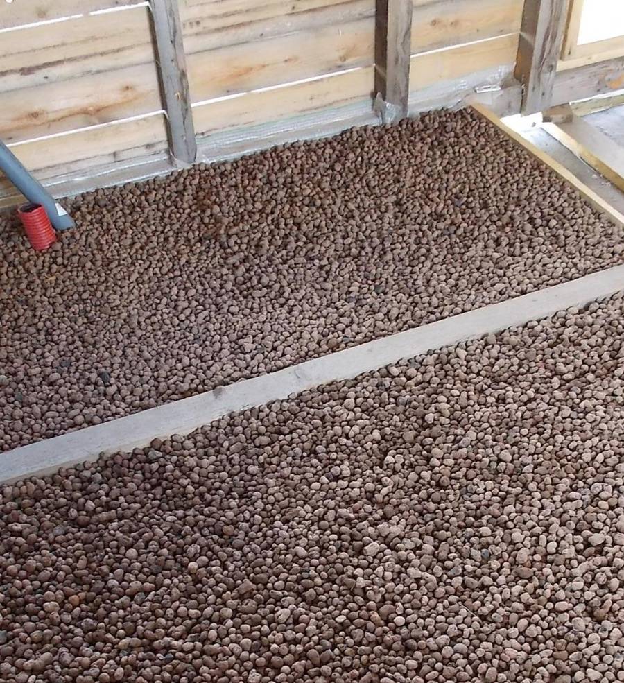 Выполнение бетонной стяжки по поверхности керамзита, служащего звукоизолирующим и теплоизолирующим материалом