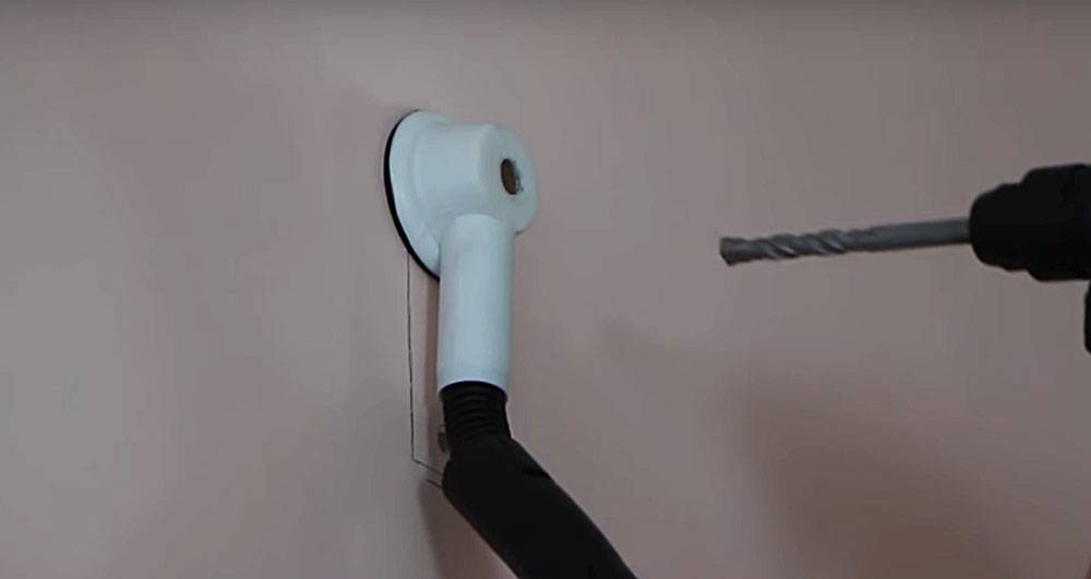 - С креплением на стену или потолок — под воздействием силы всасывания надежно «прилипает» к любым поверхностям, даже текстурированным, и удерживается там в течение всего времени, пока включен пылесос. Посередине имеет отверстие, через которое проходит сверло или коронка (кстати, диаметр отверстия может быть разным, но для бытовых нужд обычно хватает 6–7 см).