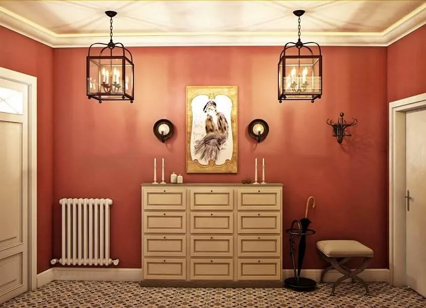В прихожей светлый пол добавит пространства, подчеркнет гостеприимство. Сочетается с бежевыми обоями с золотым дизайном, однотонными стенами, окрашенными с деревянными панелями. Подойдет плитка под дерево, линолеум, паркет.