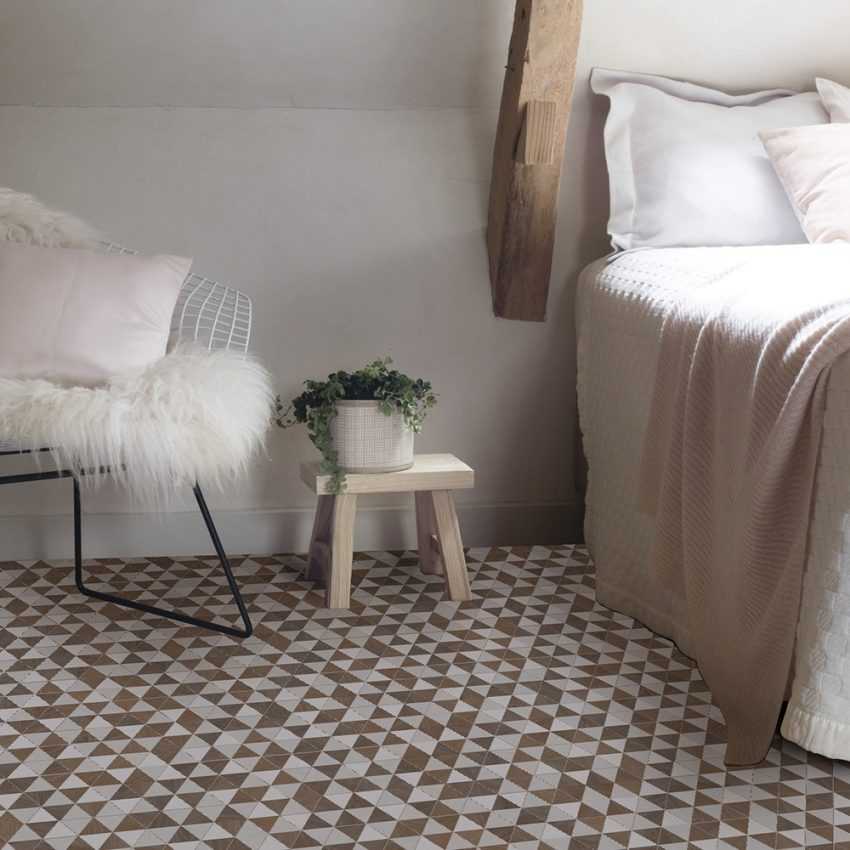 Важным достоинством спальни в плане выбора цветового решения для оформления пола является возможности выбрать светлый и даже белый цвет, что в отношении кухни, к примеру, будет совсем не практично.