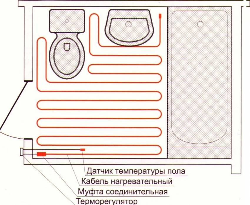 Схема укладки кабельного теплого пола в ваннойПроект электрического теплого пола в ванной комнате