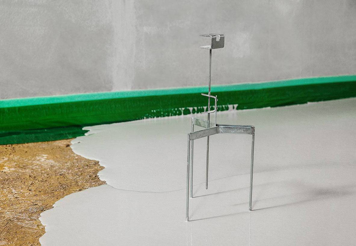 бетонную стяжку, затем наливается жидкий состав.