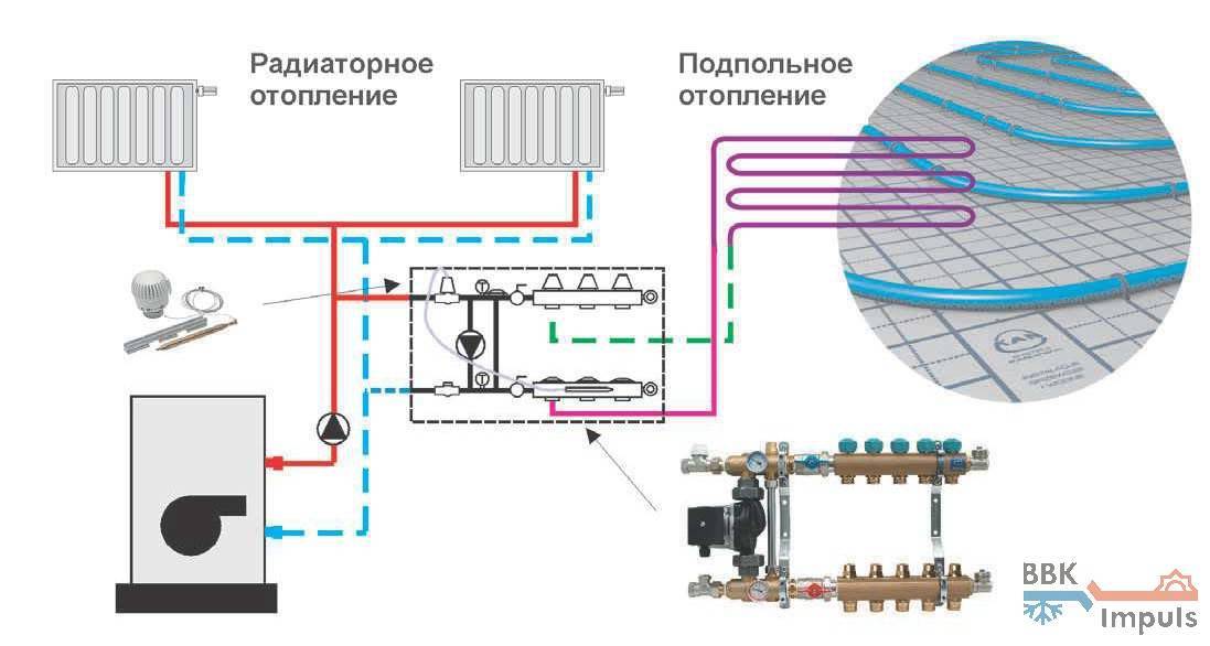 Схема подключения теплого пола от радиатора