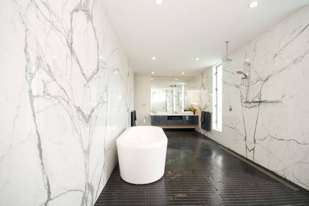 Это высокая нагрузка и не каждые стены и пол её выдержат. Поэтому прежде, чем купить керамогранит, надо всё тщательно просчитать.
