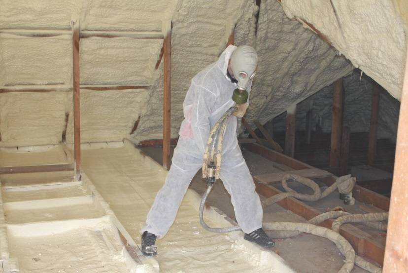 Отдельная категория утеплителей – напыляемые материалы. Это пенополиуретан и пеноизол. Оба считаются довольно эффективными. Преимущество перед конкурентами достигается за счет нанесения. Покрытие получается монолитным, что избавляет от мостиков холода.