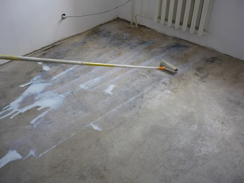 Грунтование основы проводится незадолго до укладки линолеумного покрытия. Предварительно с чернового основание следует тщательно удалить весь строительный мусор, пылевые загрязнения.