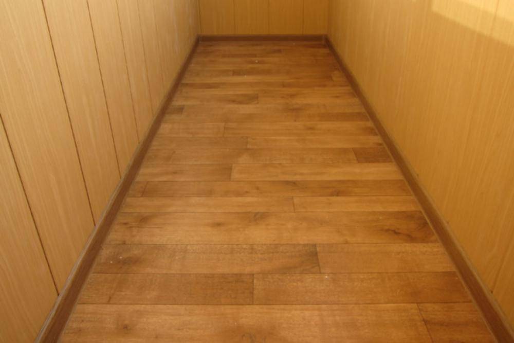 Смонтированная и вскрытая лаком деревянная конструкция готова к эксплуатации. Для обеспечения долгой службы настила на балконе стоит подумать о финишном покрытии до монтирования плинтусов. Какой материал подойдет для пола на балконе: