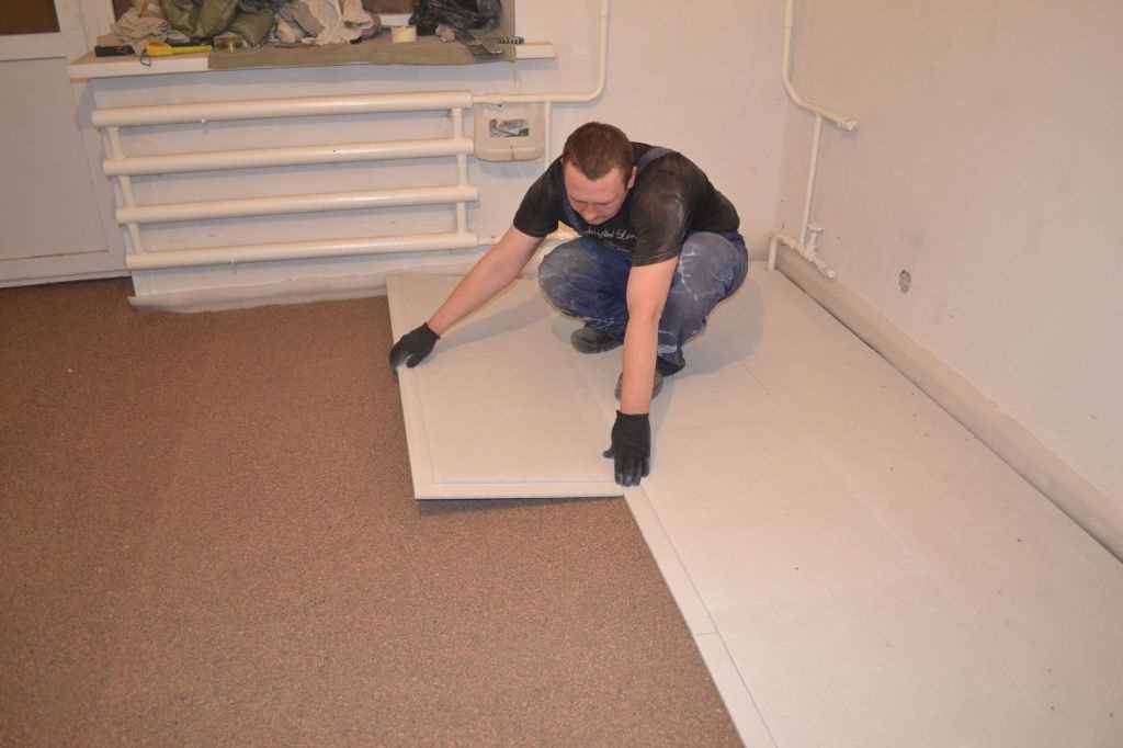 Принцип укладки изделий данного вида аналогичен тому, как настилается фанера по деревянному полу, но при этом нет необходимости в герметизации стыков.