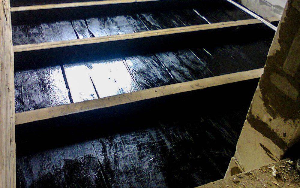 Окрашивание с целью гидроизоляции – хорошая альтернатива обмазке. Работы легко провести самостоятельно, благодаря легкости устройства метода и доступности материалов. Доски под плитку покрывают жидким битумом и мастикой в три подхода, давая просохнуть предыдущему слою.