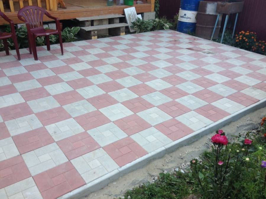 Если ваш выбор пал на плитку квадратной формы, то особого выбора в стилях укладки не будет, зато можно поиграть с цветовыми решениями или уложить ее в шахматном порядке. Чем больше вы будете выдумывать, тем сложнее окажется работа, потому есть смысл сперва попробовать сделать однотонную тропинку, чтобы поближе познакомиться с принципом и технологией работы, а начинать экспериментировать уже тогда, когда будет достаточно опыта.