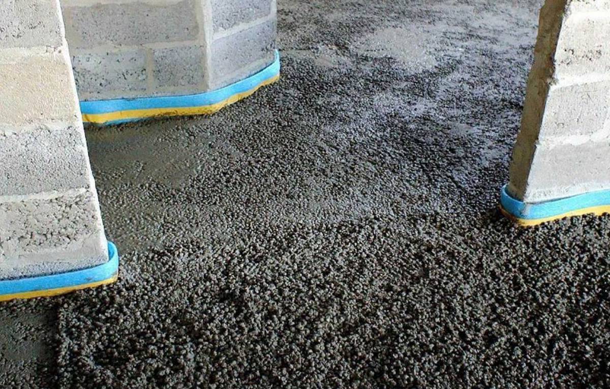 В некоторых случаях для поднятия пола, выравнивания чернового основания или просто в целях упрощения технологии используется керамзитобетонная стяжка. Для этого грунт очищают, застилают слой гидроизоляции. Затем для ровной заливки устанавливают маячки с помощью цементно-песчаного раствора.
