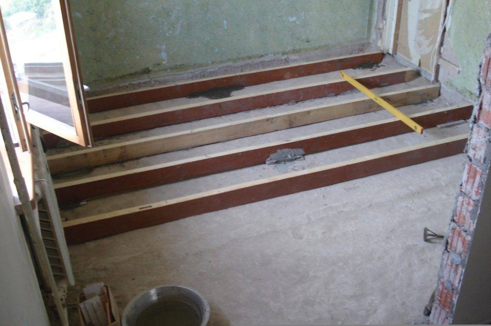 Подготовка пола. Реконструкция старого деревянного покрытия требует его полного демонтажа вплоть до самых лаг – основных крепежных конструкций. При необходимости производится замена изношенных досок; укрепляется основание. Осмотр основания. Затем выполняется отсыпка песком, поверхность уплотняется под гидроизоляцию. Для изоляции под керамзит можно использовать жидкую мастику или пергамент. Пол равномерно разбивается на зоны, огороженные рейками определенной высоты. Керамзит засыпается слоем 10 см