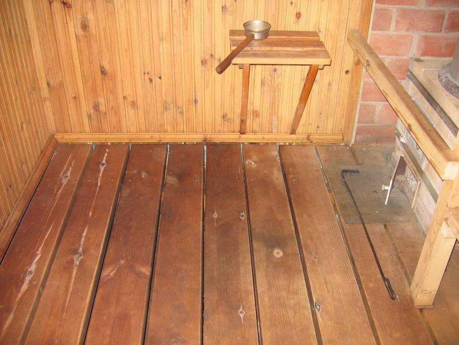 Строители рекомендуют делать пол в бане из лиственных пород – тополя, осины, дуба, сосны или пихты. Уберечь их от гниения может не только антисептик или предварительно сделанный зазор между полом и гидроизоляцией, но и съёмный пол. Его обустраивают в парилке или помывочной. Для этого доски не прибиваются, а лишь тщательно укладываются для того, чтобы после намокания их можно было заменить сухими.