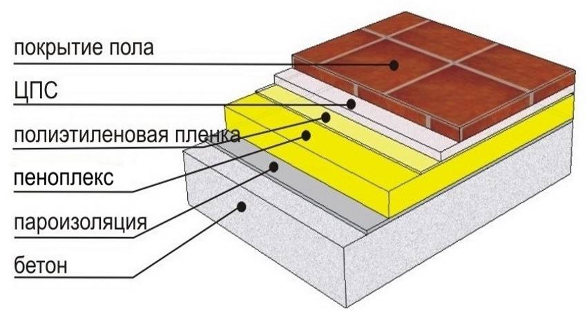 При заливке утепленной бетонной стяжки единственно верным решением является использование ЭППС, укладываемых без швов благодаря особой кромке листов или как минимум в 2 слоя со смещением стыков.