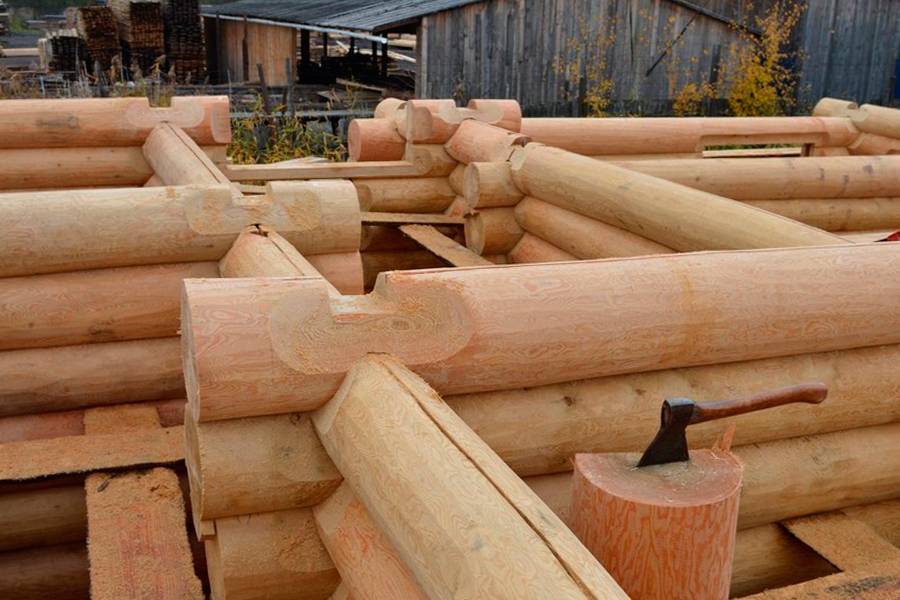Если по каким-то причинам длина бревен короче стены, на них делают срез под углом 90 градусов. Он нужен для дальнейшего соединения «в стык». Вот тут как раз могут быть трудности из-за твердости. Срезать кусок бревна идеально ровно той же цепной пилой бывает сложно. Впрочем, если допущена ошибка, место среза можно подшлифовать до ровного состояния болгаркой.