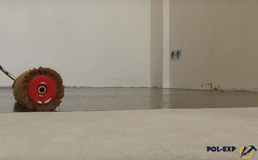 - Распределение смеси по полу, прокатывание игольчатым валиком.