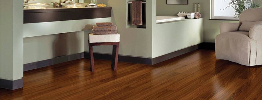 - Рассматриваемое напольное покрытие отлично подходит не только для обычных жилых и офисных помещений, но может быть установлено и в кухнях, и в санузлах, и в ванных комнатах. Винил, сам по себе, обладает водостойкостью, да еще и защищен влагостойкой пропиткой, коя предотвращает проникновение воды в структуру плитки.