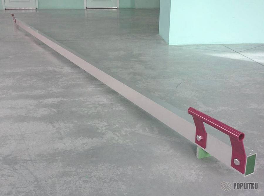 - готовый раствор заливается по уровню заранее установленных меток (маячков), затем разравнивается правилом;