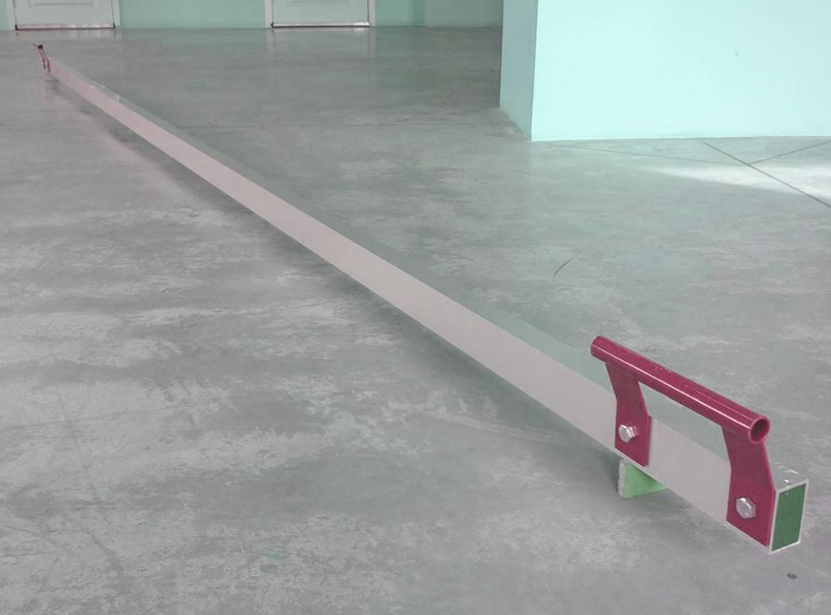 - Определите самую высокую и самую низкую точку пола. Задача не вызовет затруднений, если есть лазерный уровень, в остальных случаях придется повозиться с правилом и пузырьковым уровнем. По центру полученного расстояния поставьте контрольный маяк.