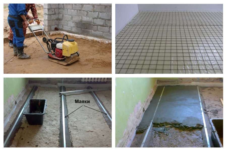Заливка бетонного пола на грунт происходит в таком порядке: