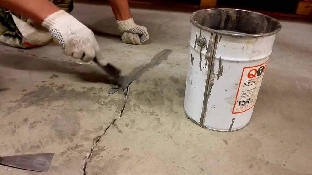 В период эксплуатации бетонного пола могут образоваться такие изъяны поверхности, как трещины и каверны. Их устраняют посредством заполнения цементно-песчаным раствором. Предварительно расшивают, удаляя все слабо держащиеся частицы, обеспыливают и наносят 1-2 слоя грунтовки.