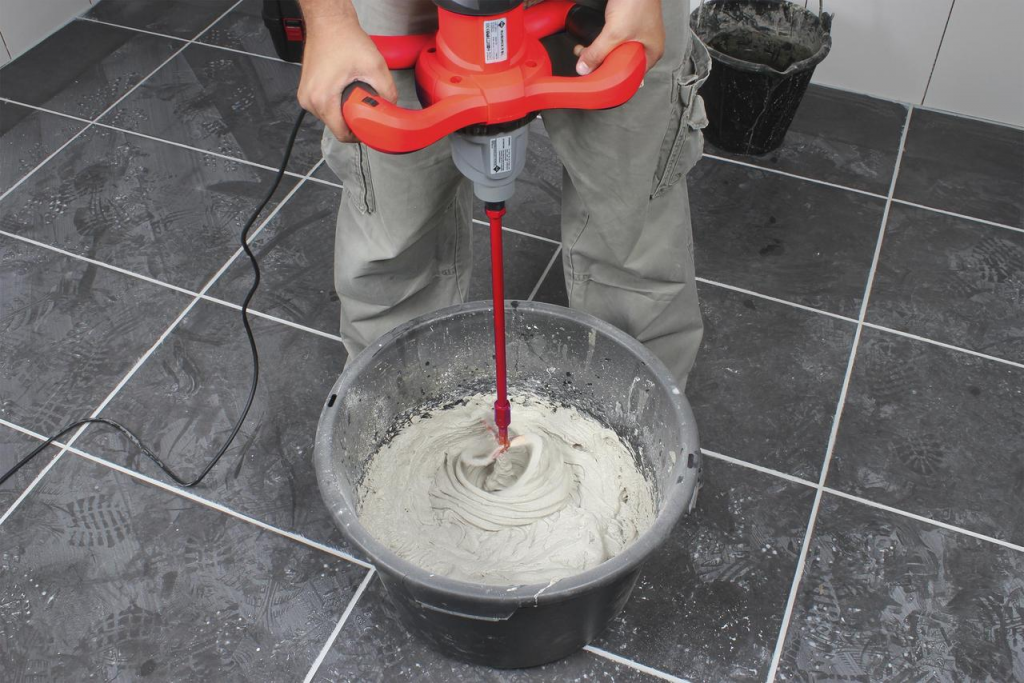 Размешайте раствор с помощью электродрели и специальной насадки.