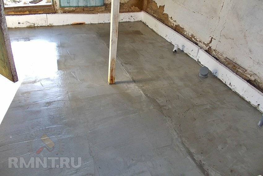 Проще всего подобные работы проводить в панельном доме, когда внизу под старыми лагами располагается плита перекрытия. Задача в этом случае: удалив все деревянные конструкции и старую гидроизоляцию, выйти на межэтажную железобетонную плиту.