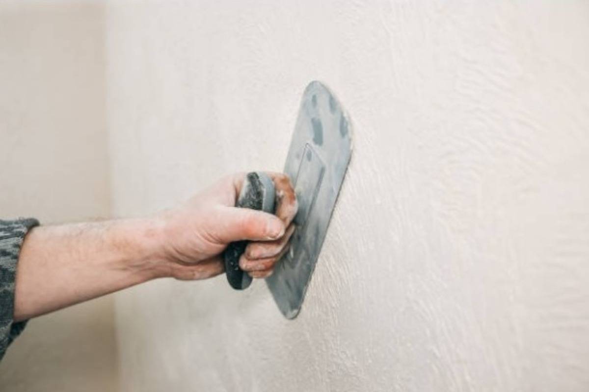 - Инструмент под небольшим углом прижимают к стене и круговыми движениями распределяют смесь.