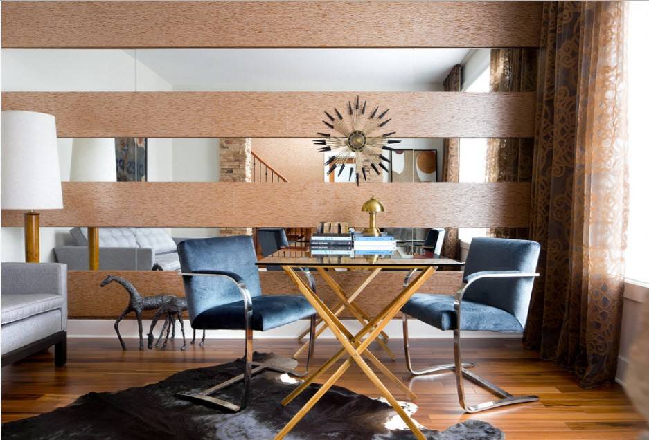 Бывает и такое что, зеркало может визуально уменьшать пространство, парадокс заключается в том, что при размещении зеркала кусками в комбинации с другим материалом, создается «разрывистый» эффект отражения, что в итоге и зрительно делает комнату меньше, с одной стороны это очень красиво смотрится, но с другой такой прием стоит использовать только в комнатах большого размера.