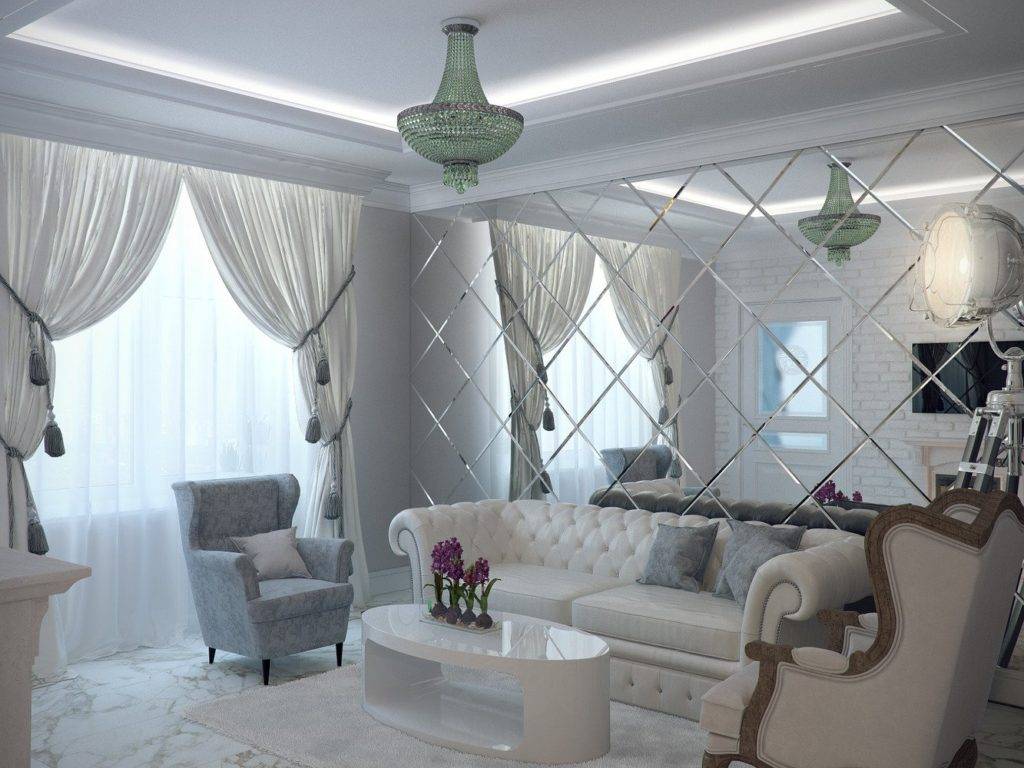 Оформить с помощью зеркал можно гостиную любой формы, для маленьких гостиных это особо актуально — чтобы зрительно их увеличить. Для больших же гостиных оформленных в роскошном стиле, использование зеркал будет так же уместным, поскольку это еще больше подчеркнет и «отразит» шик и роскошь помещения.