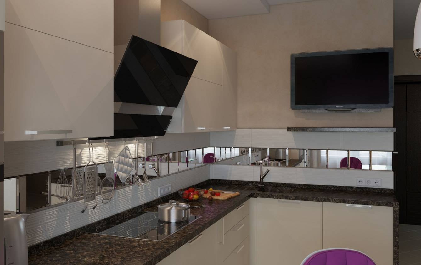 Часто такую плитку используют для отделки кухонного фартука, это может быть, как зеркальная мозайка, так и более крупные зеркальные единицы. Очень хорошо смотрятся такие фартуки в сочетании глянцевой столешницей или кухонными фасадами.